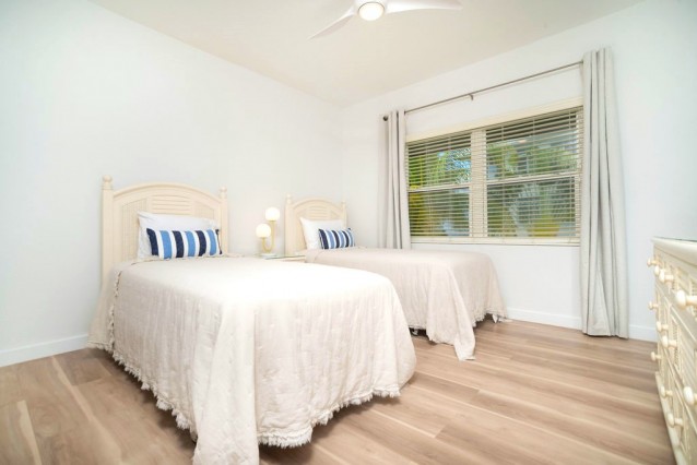 Second bedroom: Twin beds (convertible to a king), with adjacent full bathroom