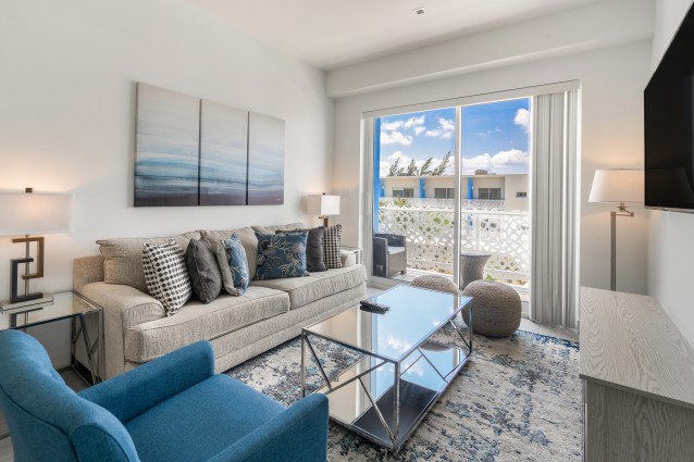 The Grove is conveniently located only steps away from Seven Mile Beach with easy beach access located directly in front of the property or just a short walk to Public Beach. If you prefer you can stay on property and enjoy the property's private rooftop infinity pools with swim up bars and bbq areas with outdoor seating.