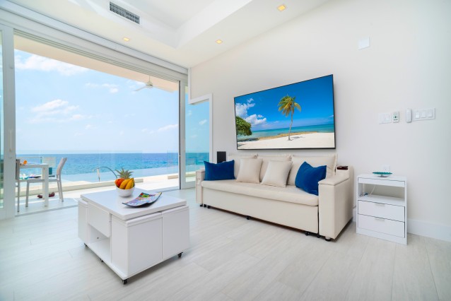 Welcome to your modern oasis by the sea. This stunning beachfront condo boasts sleek lines, contemporary decor, and panoramic ocean views from every room. The brand new one-bedroom, one-bathroom condo features an open concept living space with floor-to-ceiling windows that flood the room with natural light and provide unobstructed views of the sparkling turquoise waters of the Cayman Islands.