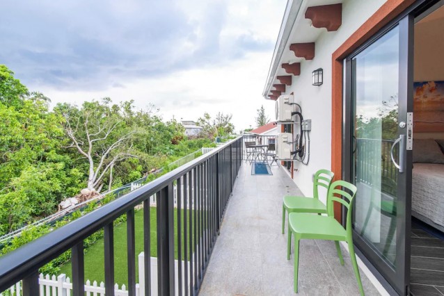 Step outside onto the private balcony and you'll be greeted with breathtaking views of the surrounding island. Enjoy a morning coffee or an evening cocktail as you take in the tropical sights and sounds. The apartment complex also offers a swimming pool and sun loungers for those lazy afternoons in the sun. With its prime location just a stone's throw from the beach, this apartment is the perfect retreat for those looking for a relaxing island escape.